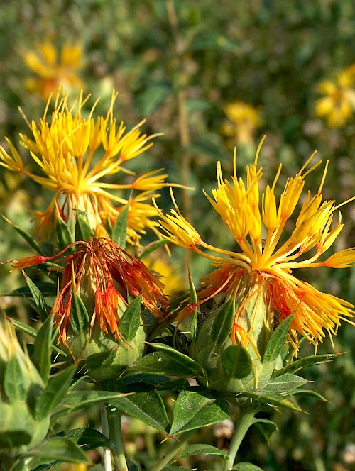 Bei unserer Distel handelt es sich um eine Pflanze, die landläufig auch als Färberdistel oder Saflor bezeichnet wird. Im Frühsommer ist sie mit ihren [seinen] orangefarbenen Blüten ein echter Blickfang im Feld und im Garten und gilt wegen ihres schönen Äußeren seit Jahrhunderten als beliebte Zierpflanze.