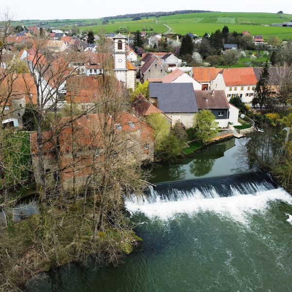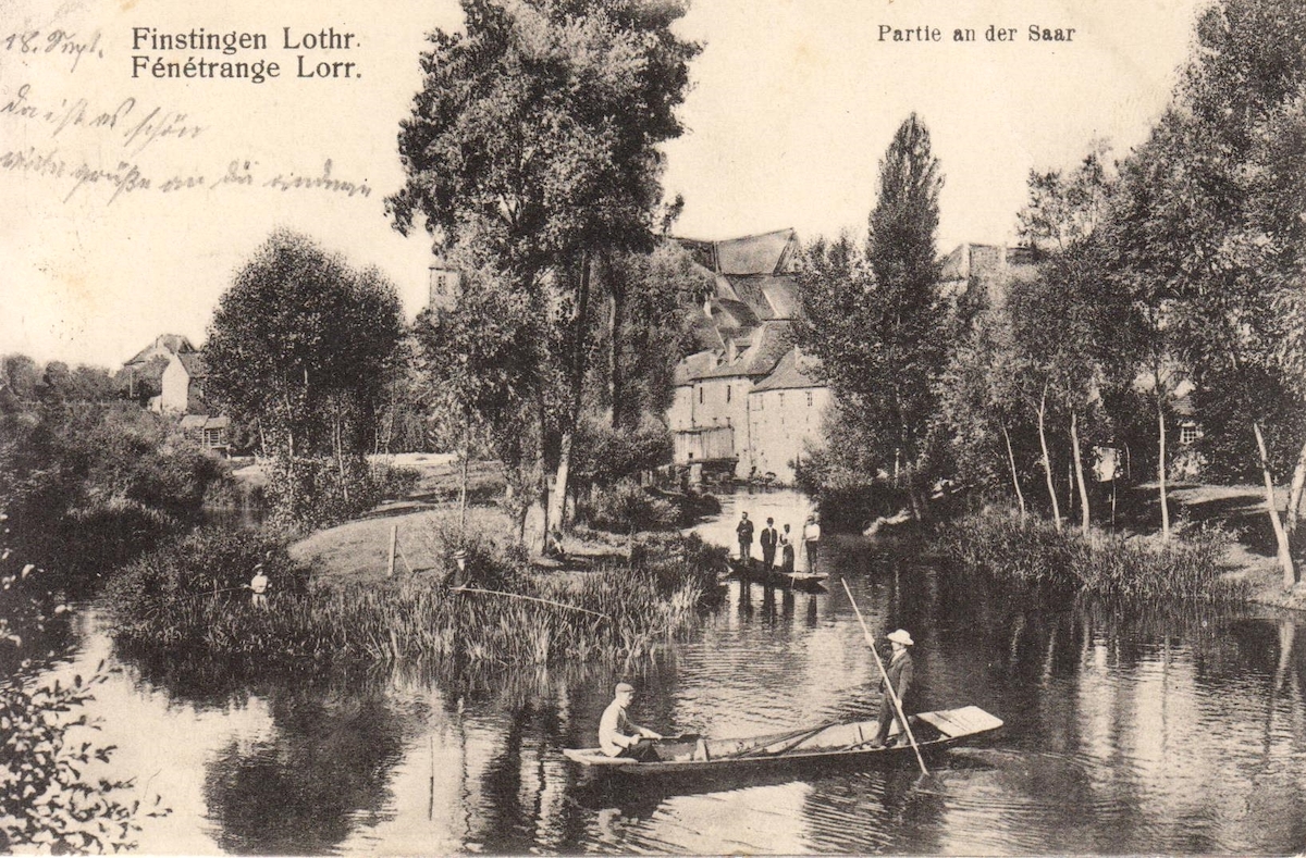 Hier lohnt nicht nur ein Ausstieg für ein Picknick oder weil hier wieder ein Wehr „die freie Fahrt“ versperrt. Das Dörfchen war einst im Besitz der Saarbrücker Fürsten, was noch heute im Baustil einiger Häuser zu erkennen ist, denn der unterscheidet sich von denen der Nachbardörfer. In der Dorfmitte hat man einen Entdeckungspfad mit Infotafeln angelegt, wo die wechselhafte Geschichte und die wirtschaftliche Entwicklung im 19. Jahrhundert erklärt werden. Auf diesem Weg erfahren wir, dass die hiesige Mühle einst als Gerbmühle arbeitete.