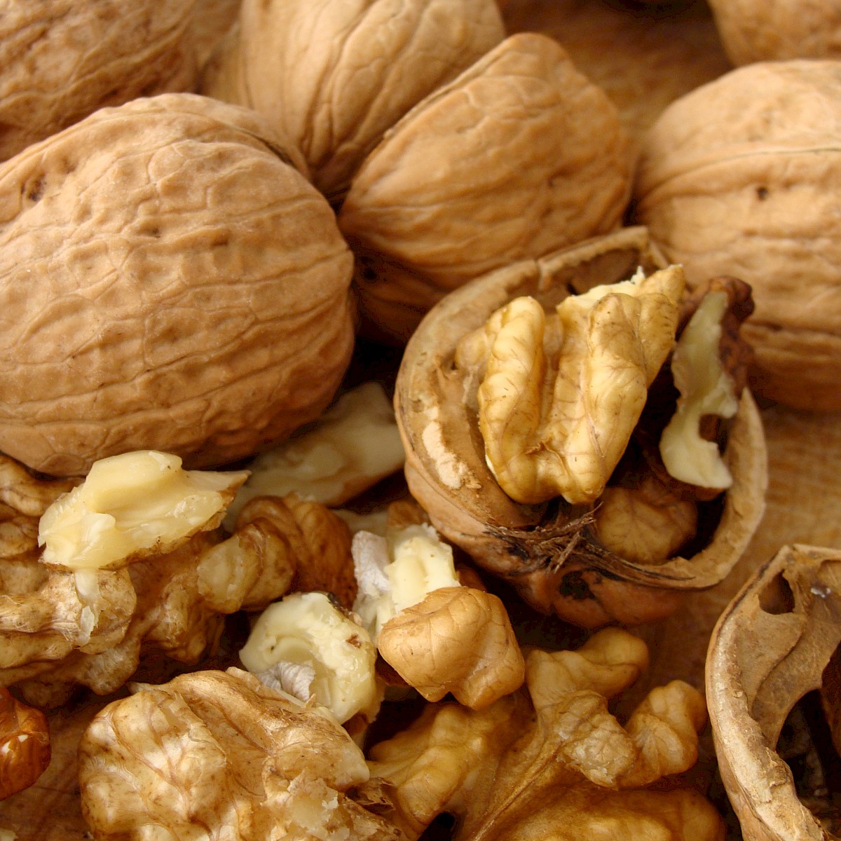 Der vermutete Grund: Walnüsse in aller Art von Speisen. Diese Erkenntnisse setzen sich langsam durch und sind mitverantwortlich für die Renaissance der heimischen Walnuss auf unserem Speiseplan. Beim Öl der Walnuss handelt es sich um ein rein pflanzliches Öl, mit einem Anteil von ca. 13 Prozent Omega-3-Fettsäure. Damit liegt das Walnussöl deutlich über dem viel gepriesenen Rapsöl (bis 9 Prozent), obwohl es an die Werte der „Omega-3-Bomben“, wie Leinöl (bis 52 Prozent) oder Leindotteröl (bis 48 Prozent) nicht heranreicht.