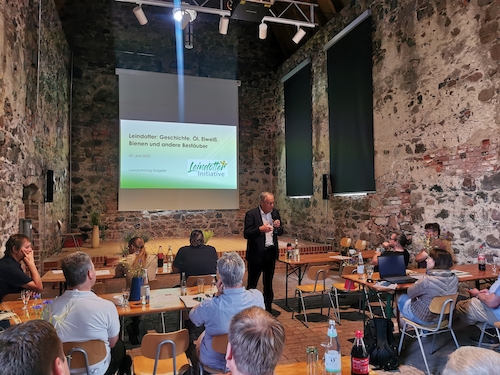 Im Anschluss der Tagung, an der auch Patric Bies von der Bliesgau-Ölmühle teilnahm, besichtigten die Anwesenden größere Leindotterfelder von Herbert Miethke, der als Landwirt den Anbau bzw. das Gesamtprojekt koordiniert. Alle Interessierten Landwirte dürfen sich gerne mit Fragen direkt an Herbert Miethke wenden: herbert.miethke@aol.de oder Tel. 0172 9021965