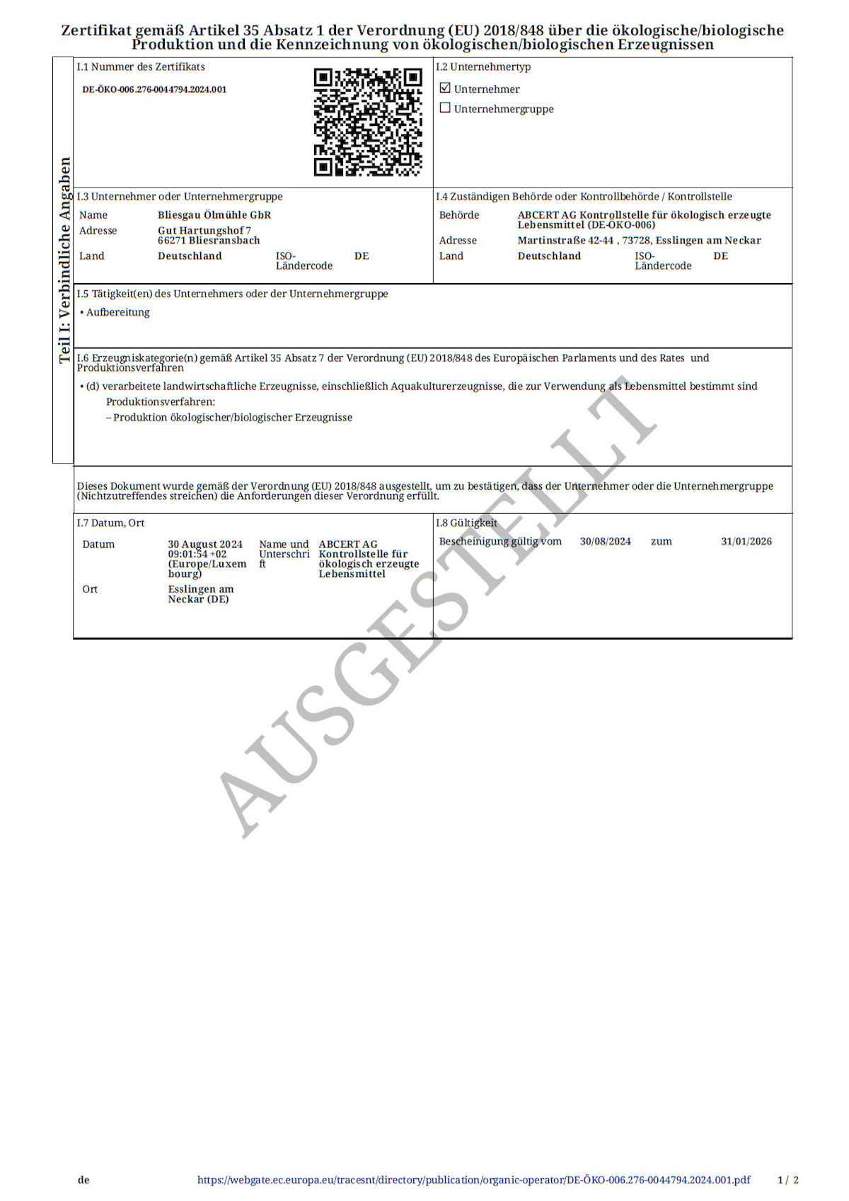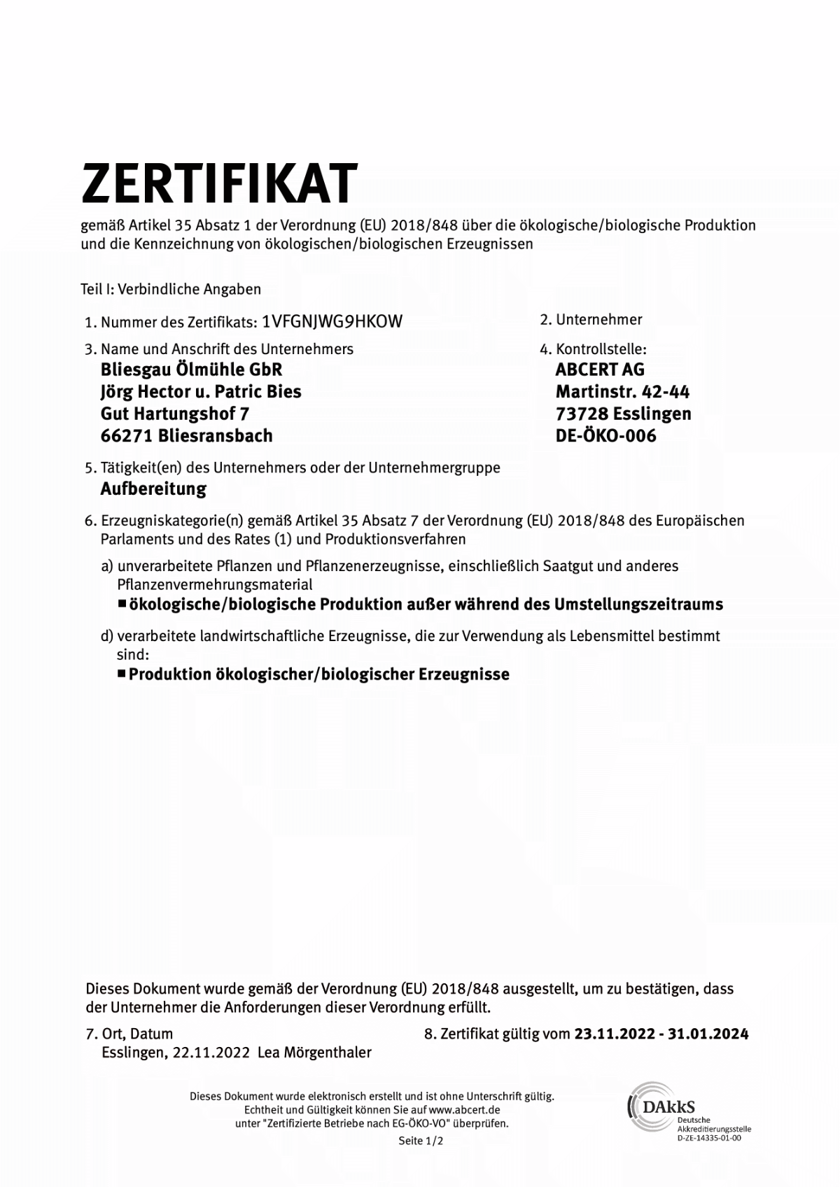 Bliesgau Ölmühle • Gut Hartungshof • Bliesransbach
